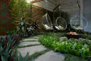 Sau một ngày làm việc căng thẳng, việc ngồi trong một khu vườn nhỏ với cây xanh và tiếng nước chảy giúp giảm stress rất hiệu quả.